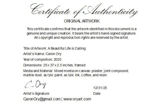 A Beautiful Life is Calling invites a sense of optimism grounded in reality—an artwork that acknowledges both the beauty and the complexity of meaningful relationships. Its textured surface and unexpected curves create depth and movement, encouraging the viewer to slow down and discover new details over time.